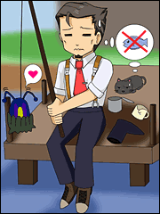 - 休日にコッペとアルモリカ村にて釣りをするセルゲイ課長。