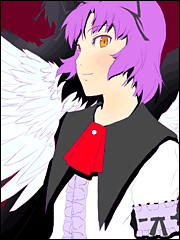 - 大人っぽい表情を浮かべるレンがとても美しく、キレイな目にドキっとしてしまいます。背景の赤と黒い影、翼が殲滅天使を象徴していますね。色合いがとてもキレイです。
