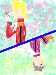 - いつもと違う落ち着いた雰囲気の二人に、ジーンときてしまいました。普段の楽しいやりとりを見せてくれる二人もいいですが、この二人も素敵です。二人が逆さまに描かれているのが、抱えている深い事情を感じさせてくれますね。