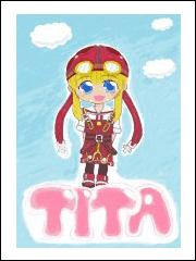 - 青空を背景にティータの赤色がとても映えますね。チョコンと立っている姿がとてもかわいらしいです。文字もプックリしていてティータのキュートさが感じられます。