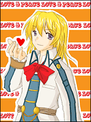 - 「LOVE&PEACE」と書かれたオレンジ色のポップな背景がオリビエカラーで彩られ、オリビエへの愛がたくさん詰まった作品ですね。赤いリボンと赤いハートがとてもキュートです♪