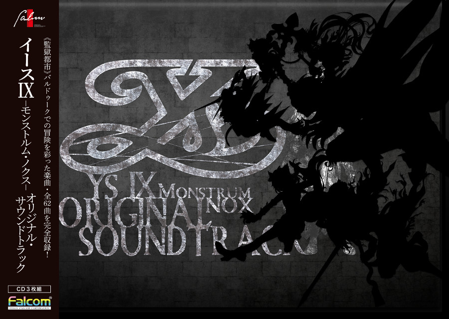 日本ファルコム株式会社(代表取締役社長:近藤季洋、以下「ファルコム」)は、PlayStation®4用タイトルとして好評発売中のアクションRPG「イース」シリーズ最新作、『イースⅨ –Monstrum NOX-(モンストルム・ノクス)』より、劇中使用曲を完全収録したCD3枚組音楽アルバム『イースⅨ -Monstrum NOX- オリジナルサウンドトラック』を2019年11月22日(金)に発売することをお知らせします。