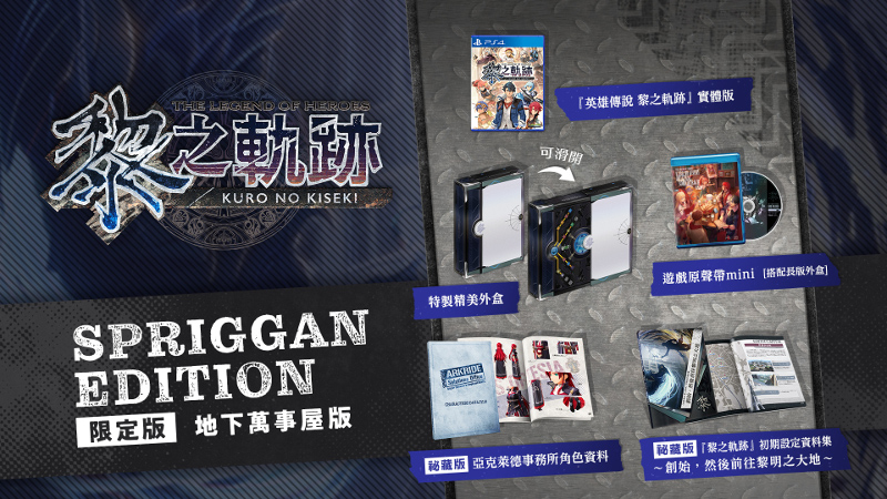 尚、多数の豪華アイテムを同梱した限定版商品『英雄伝説 黎の軌跡 SPRIGGAN Edition(スプリガン・エディション)』繁体字中国語版/ハングル版も通常版と同時発売となります。
