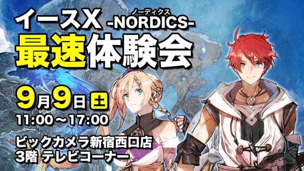 明日9/9(土)「イースX -NORDICS-」(PS5版)の最速体験会を新宿で開催!プレイいただいた方には赤毛の剣士ボールペンをその場でプレゼント。台風により交通機関への影響もあるかもしれませんので、どうぞご無理のない範囲でご参加ください。