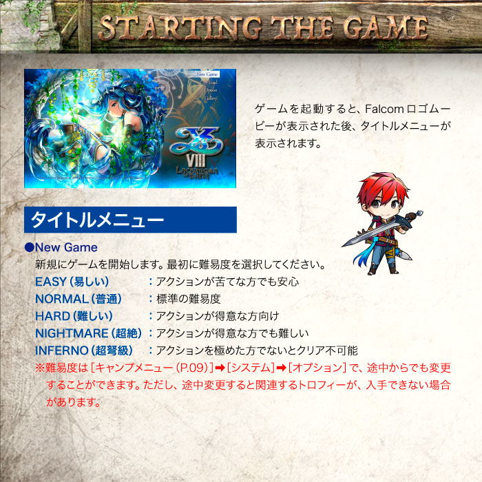 【PlayStation 5「イースⅧ -Lacrimosa of DANA-」マニュアル】