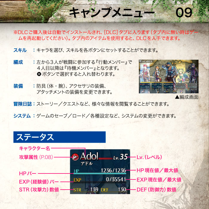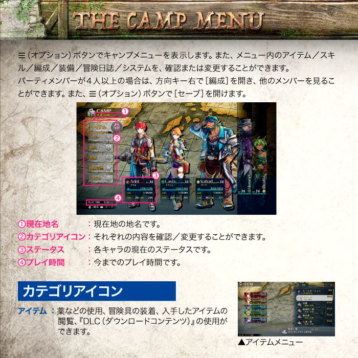 【PlayStation 5「イースⅧ -Lacrimosa of DANA-」マニュアル】