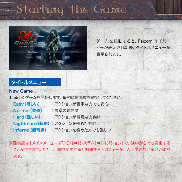 【PlayStation 5「イースⅨ -Monstrum NOX-」マニュアル】