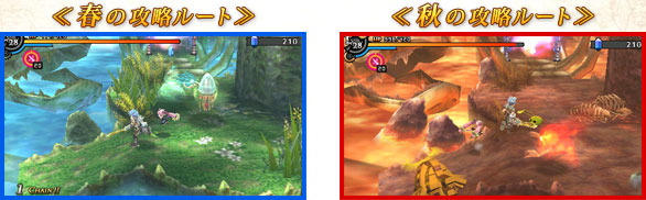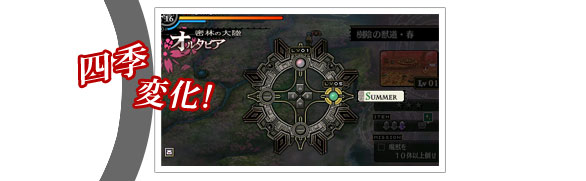 アクションステージの見た目だけでなく、出現する敵や地形、攻略法までも変化。特定の季節のみで発生する特殊イベントやストーリー本編と密接に関わってくる隠しシナリオなども?