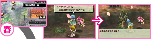 そこで、『春の時期に植え、夏に実をつける』というその苗木を持って四季を変化させることができるロストヘブンへ。