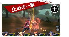 ![]() 軌跡シリーズの特徴でもあるAT(アクションタイム)コマンドバトルをベースに、新要素「戦術リンク機能」を搭載! 次世代戦術オーブメント『ARCUS(アークス)』を使用して仲間同士をリンク。 ![]() 武器の属性と敵の弱点をあわせて攻撃を行うと、攻撃ヒット時に一定確立で敵の体勢が崩れる「体勢崩し」が発生。 ≫攻撃属性についてはこちら 「体勢崩し」発生直後、制限時間内に対応したボタンを押し派生攻撃を発動させよう。 【追撃】を成功させブレイブポイントが溜まると、強力な【ラッシュ】【バースト】の発動も可能に。