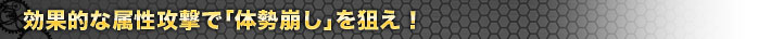 | ⇒攻撃属性[射]特化型。[射]が弱点の敵に対してはかなりの高確率で体勢崩しを発生させることができる。 |