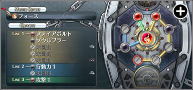 …オーブメントの中央のスロットにセットできる特別なクオーツ。戦闘を重ねると経験値が溜まり、セットした「マスタークオーツ」自身が成長していく。レベルが上がると基本パラメーターや特殊能力が強化される他、使用可能なアーツの種類も段階的に増えていく。