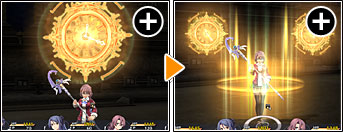 術者の周囲に出現した時計が2に割れ、時が加速。連続行動が可能になる。 |