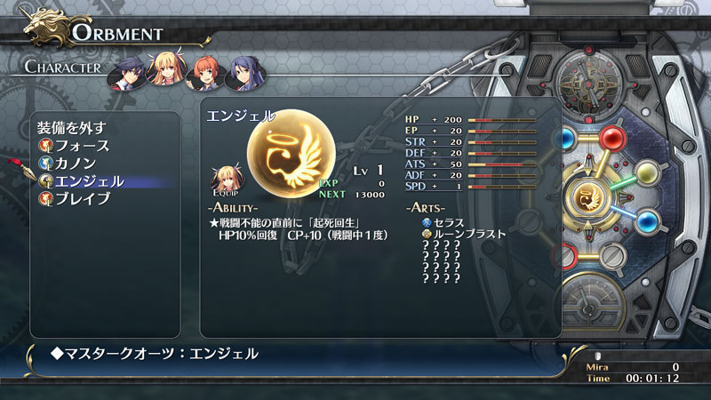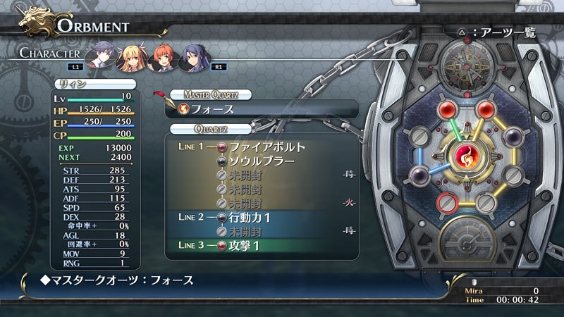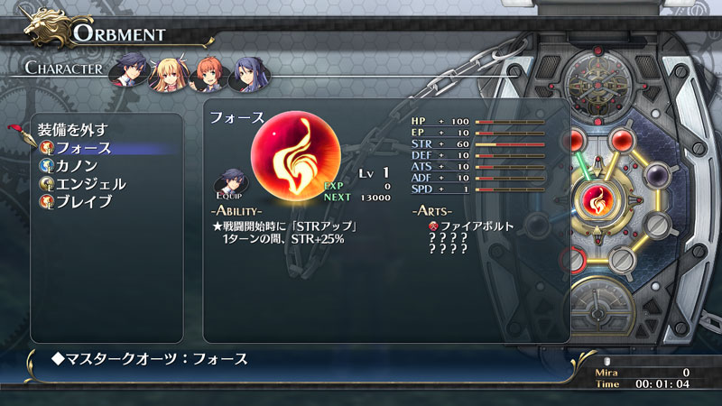 オーブメントのスロットを開封するとクオーツのセットが可能に。スロットの開封には、戦闘や宝箱等で手に入る《セピス》が必要になる。