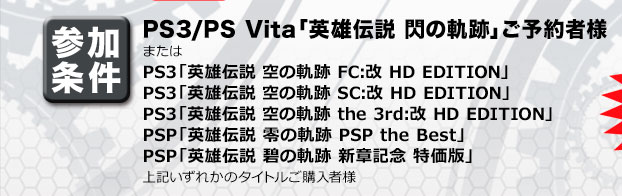 ※抽選は対象タイトル1本につき1回とさせていただきます。ただし、「英雄伝説 閃の軌跡」に関しては、ご予約本数に関わらず抽選回数は1回限りとなります。予めご了承ください。