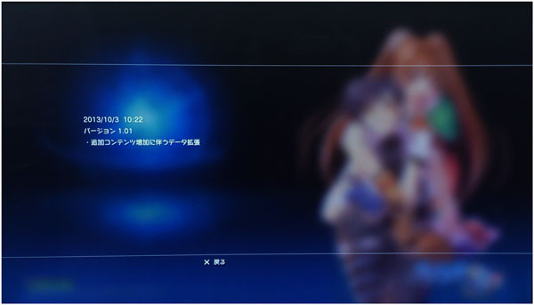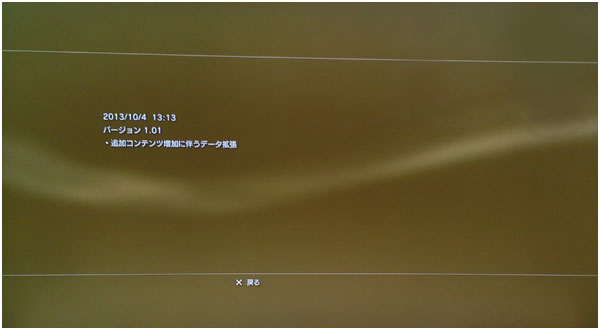 パッチがあたったか確認する場合は、PS3の“XMB”で[ゲーム]→[英雄伝説 閃の軌跡]を選択し、△ボタンを押すと項目が表示されるので[更新履歴]を選んでください。
