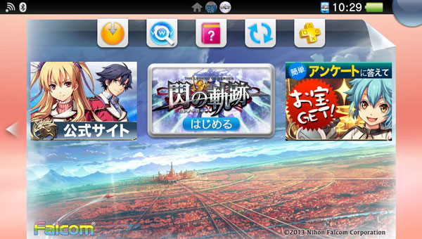 1)PS Vitaを起動しホームにある「英雄伝説 閃の軌跡」のゲームアイコンをタップしてLiveArea™画面を開いてください。