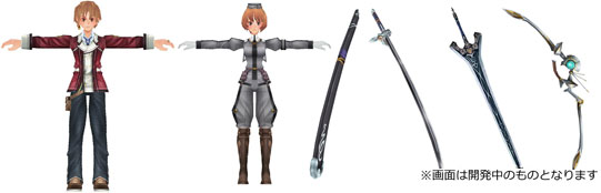 トールズ士官学院の特科クラス《Ⅶ組》に所属する「リィン・シュバルツァー」と「アリサ・ラインフォルト」の制服(冬服)のほか、彼らの指導教官である「サラ・バレスタイン」や軍事教官「ナイトハルト少佐」など、個性豊かで魅力的なキャラクターたちの武器や防具を獲得することができます!