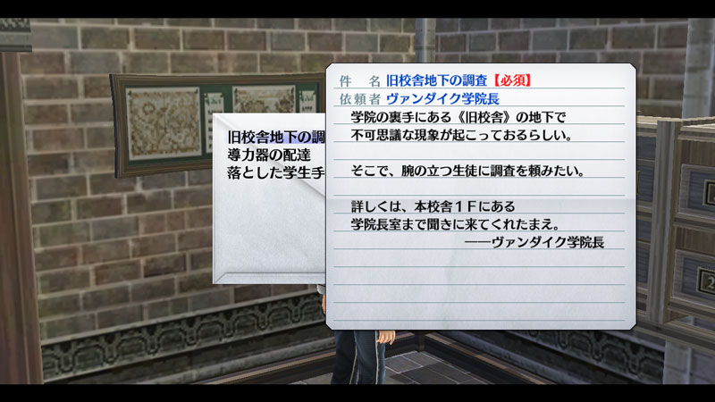 トワ生徒会長が人々の要望をまとめ、学生寮にあるリィンのポストに投函。休日になると主人公リィンの課外活動として、その投函された学院生や街の人々からの要望をクエスト形式で請ける事ができる。