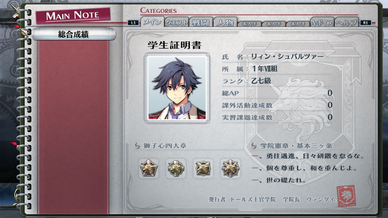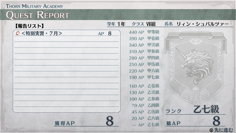 通常授業、課外活動、実技テストなどの成果により、AP(アカデミックポイント)を得られる。