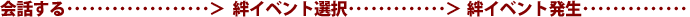 自由行動日に割り当てらる『絆行動ポイント』を消費することで対象キャラとの『絆ポイント』を上昇させることができる。