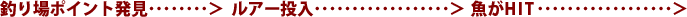 街中やフィールドに存在する『釣りポイント』では、決まった回数だけ釣りができる。魚には種類や大きさによって「釣果ポイント」が設定されており、釣り上げに成功すると「釣果ポイント」を入手することができる。