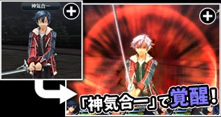 戦闘中、特殊クラフト「神気合一」を使用して、リィンが己の内に眠る強大な力を覚醒させ、外見も銀髪&灼眼へと変化。