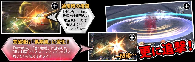 基本ステータスが大きく上昇するのはもちろん、覚醒時は攻撃クラフトにも変化が見られる。