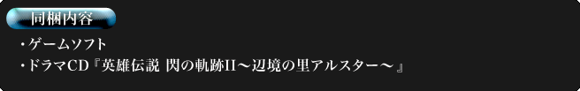 | ●ドラマCD出演キャスト(予定)● リィン:内山昂輝 / アリサ:堀江由衣 / エリオット:白石涼子 / ラウラ:伊瀬茉莉也 / マキアス:佐藤拓也 / ユーシス:立花慎之介 / エマ:早見沙織 / フィー:金元寿子 / ガイウス:細谷佳正 / ミリアム:小岩井ことり / トワ:野中藍 / トヴァル:杉田智和 / アルティナ:種田梨沙 他 |