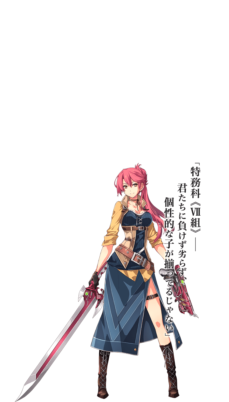 猟兵団「北の猟兵」の元団員にして《紫電》の異名で知られる、黙っていれば美人な凄腕A級遊撃士。