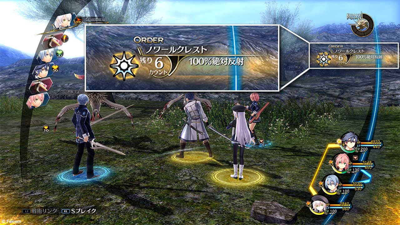 オーダー発動には戦闘中に溜まるBP(ブレイブポイント)を消費する必要がありますが、戦闘中にオーダーを切り替えたり、場合によっては発動中のオーダーを解除するなどブレイブオーダーを上手く利用することで戦況を有利に運ぶことができます。