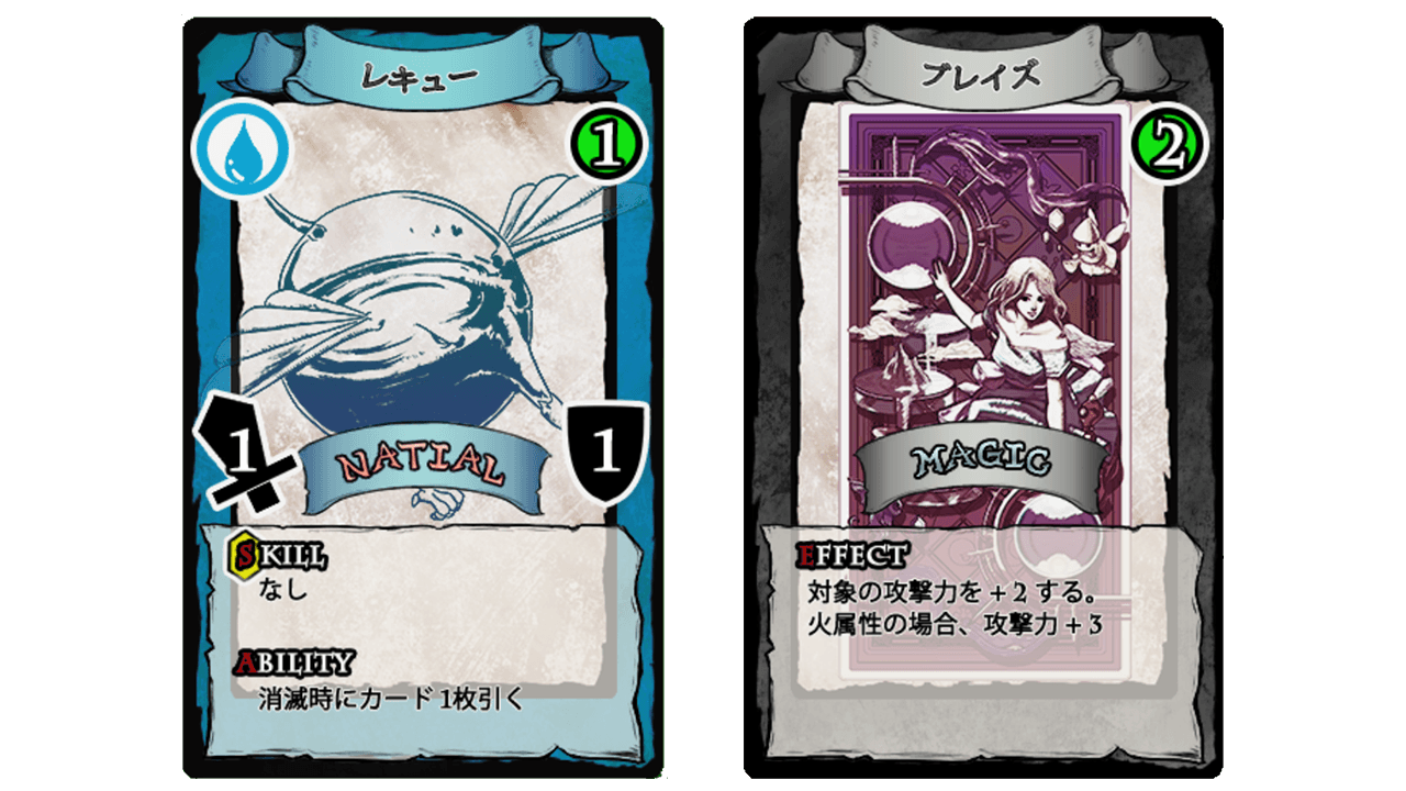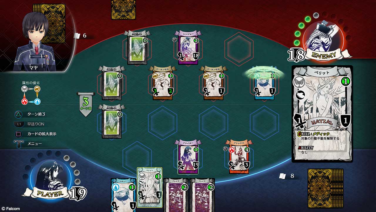 ③毎ターン回復するマナ(ポイント)を消費し、手札の中からネイティアルカードの召喚、魔法カードの発動、相手カードへの攻撃などを行っていく