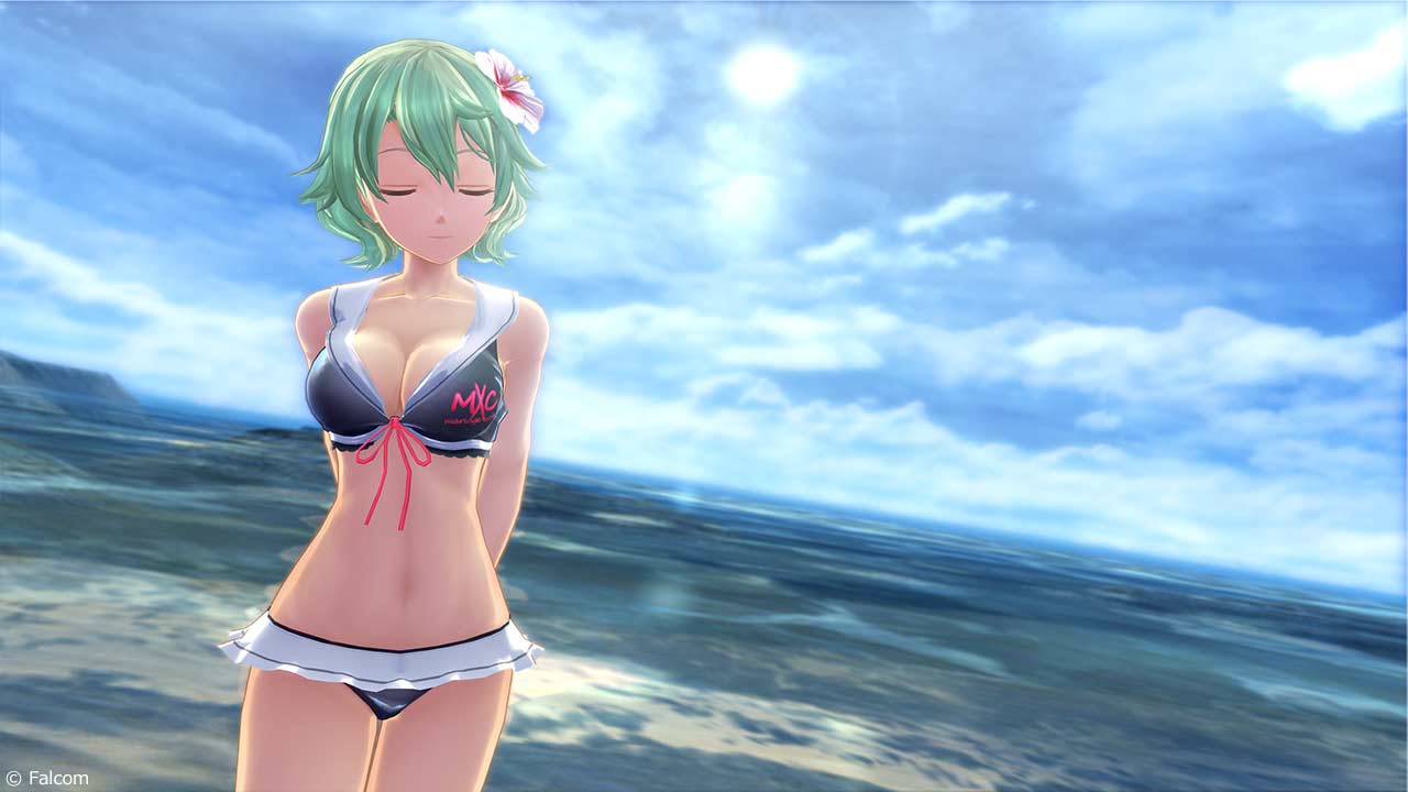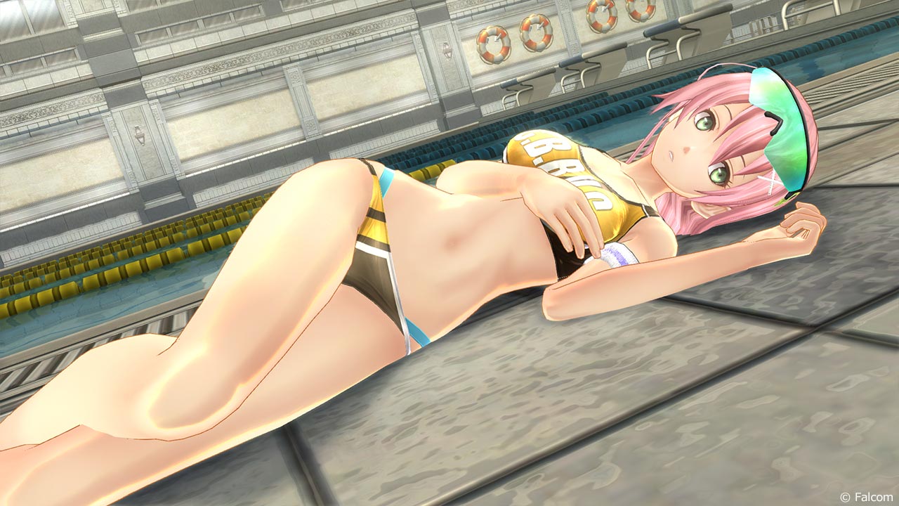 機能的で格好良くも可愛らしい、ユウナのオリジナル水着。水着にあわせてユウナが選んだスポーツグラス。