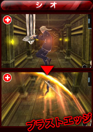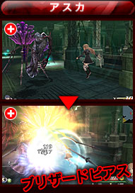 溜め時間がややあるものの、アスカ、ソラと比べて攻撃範囲が広いため、背後のグリードに対しても有効。 |
