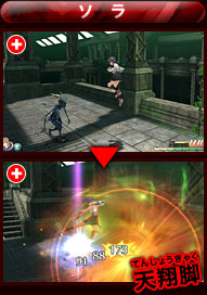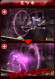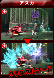 ソウルデヴァイスの軌跡にあわせて中空にクリスタルが出現し、多段ヒットさせることができる。 |
