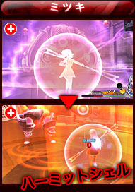 ミツキの剛撃スキル「ハーミットシェル」は防御型スキルのため、他のスキルと併用することが可能。
