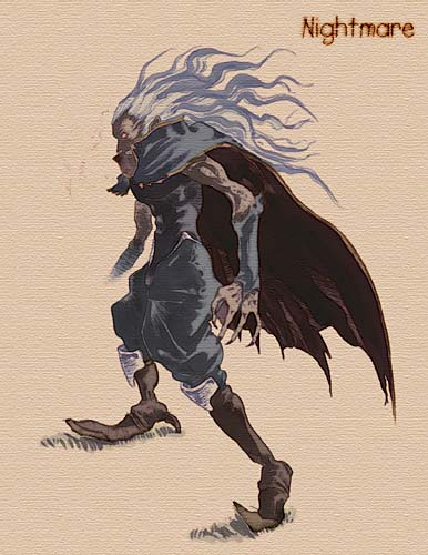ナイトメア:闇を統べる夢魔の帝王。防御力がかなり低いという弱点こそありますが、最強の魔法防御を誇ります。攻撃・魔力なども高めです。地中からのびるツタで敵を絡めとり、真紅の魔剣で貫きます。 IMAGE ILLUSTRATION |