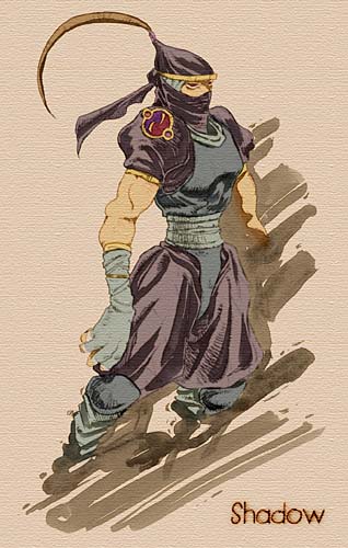 シャドウ:光に焦がれる影の眷族。動きが素早く、移動範囲が5あるのが特徴のマスターです。防御・魔法防御は少々劣るかもしれません。射程が4ある手裏剣は、かなりの攻撃力を誇ります。 |