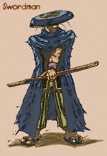 ソードマン:流れるままに生きる漂泊の剣客。攻撃力の高さに加え、魔力・魔法防御に優れている特性をもちます。その反面、防御は平均を下回ります。仕込み杖から繰り出されるのは、東方の剣術“居合い斬り”。 IMAGE ILLUSTRATION |