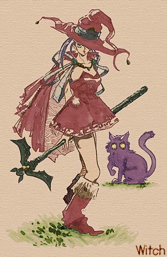 ウィッチ:偉大なる秘術に憧れる魔女見習い。二番目に高い魔力を持っています。そのかわり攻撃・防御・早さなどは見劣りするでしょう。師から授かった魔女の杖は、ささやかな攻撃力しか備えていません。 IMAGE ILLUSTRATION |