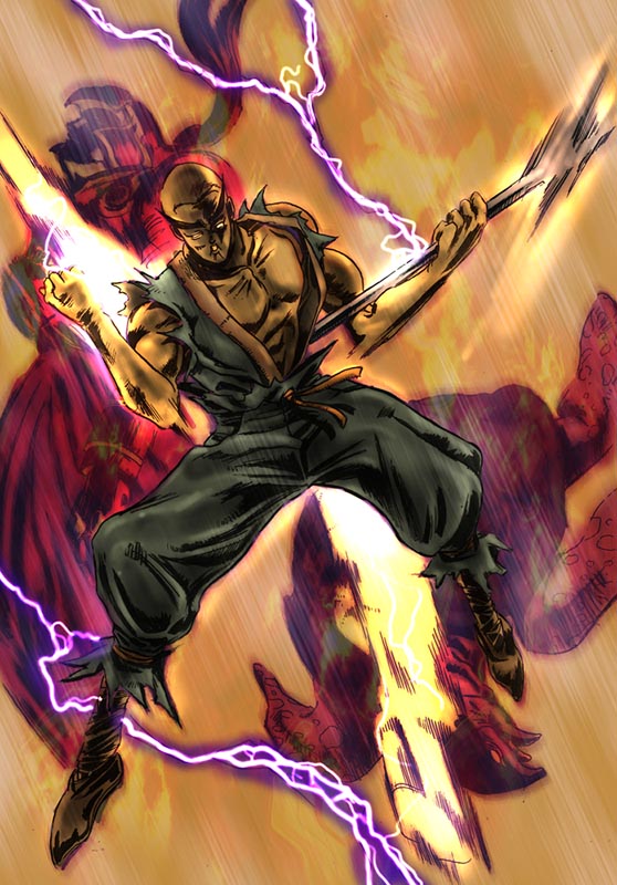 手に長い三叉矛をたずさえ、異様に輝く目で和尚を見据えている。