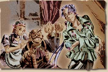 公爵は紙一枚の隙間でそれをかわし、女神に近づくと、横ざまにサーベルで切りつけた。