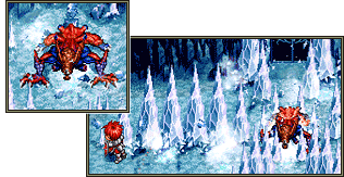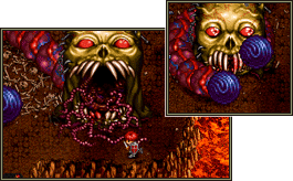 溶岩地帯の奥にいるボスモンスター「ゲラルディ」。 口から不気味な触手を吐き出して攻撃をしてくる。 ボスにダメージを与えられるのは、 この口を開いている間だけ。チャンスを逃さず口を狙おう。