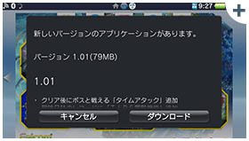 | 4)ダウンロード終了後、LiveArea™の「アップデート」アイコン、もしくは、画面中央の「はじめる」をタップするとインストールが開始されます。 |