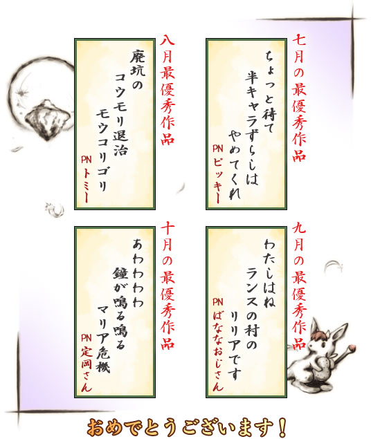 ※2009年7月〜10月に実施したイース川柳月間最優秀作品