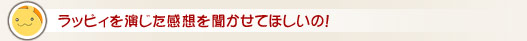 ラッピィの見た目を意識し過ぎると、どうしても全体的に子供っぽい演技になってしまうので