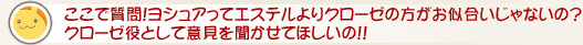 「何故(エステルじゃなくて)クローゼを選ばなかったんだっ!」って(苦笑)。