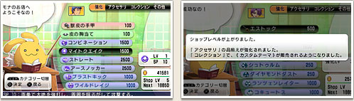 モナのショップでは戦闘で得た「モナポイント」を使って、装備・スキル・スキルの強化・アクセサリの購入ができます。