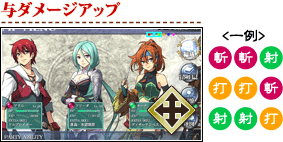 斬・斬、打・打など、同属性メンバーが2人いる場合に発動。敵に与えるダメージが増加し、苦手属性の敵とも戦いやすくなります。