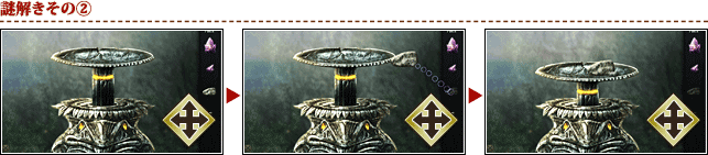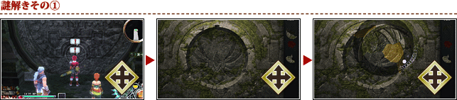 冒険の途中出くわす、石版を組み合わせたり重りを調整して扉を開けるといった特殊な仕掛け。